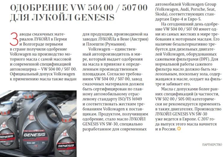 Изготовители автомобильных двигателей разрабатывают собственные допуски – масла получают их только после прохождения испытаний. Например, у концерна VW есть специальный допуск VW505.00, разработанный для моторов с наддувом при нормальном интервале обслуживания. При подборе масла важно учитывать такие допуски, если масло не проходило испытаний, то возможен ускоренный износ трущихся деталей или образование отложений внутри мотора.